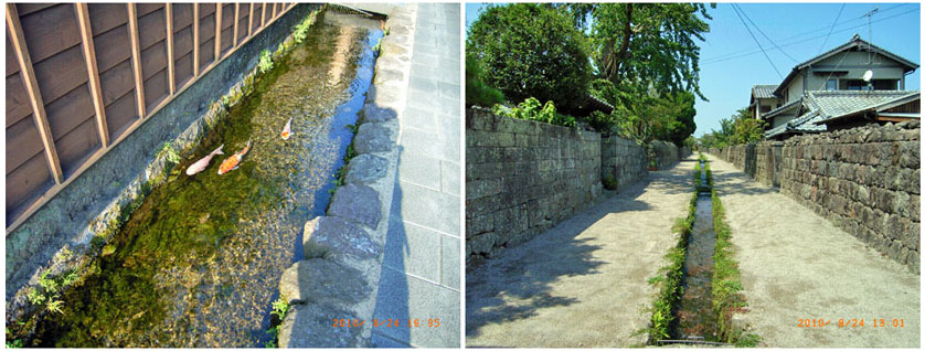 島原市内の用水路の様子。 江戸時代に作られた武家屋敷