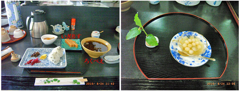 他にも「いぎりす」や「かんざらし」という郷土料理があります。「いぎりす」という名前から外国伝来の料理のように聞こえますが、実際には海草の「いぎす草」を使った料理のことです。イギスが次第に訛り、「いぎりす」になったそうです。イギリスは、最初に黒いいぎす草を白くなるまで3,4回洗い、お湯に溶かして煮詰めた後、にんじん等を千切りにして固めた食べ物です。ぼそぼそと奇妙な食感の素朴な料理です。 |