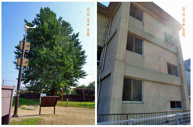写真下左: 大野木場小学校の校庭のケヤキ。
